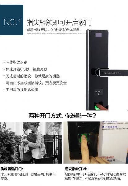开锁方式:指纹开锁,密码开锁,刷卡开锁,手机开锁等多种开锁方式供您选择。
