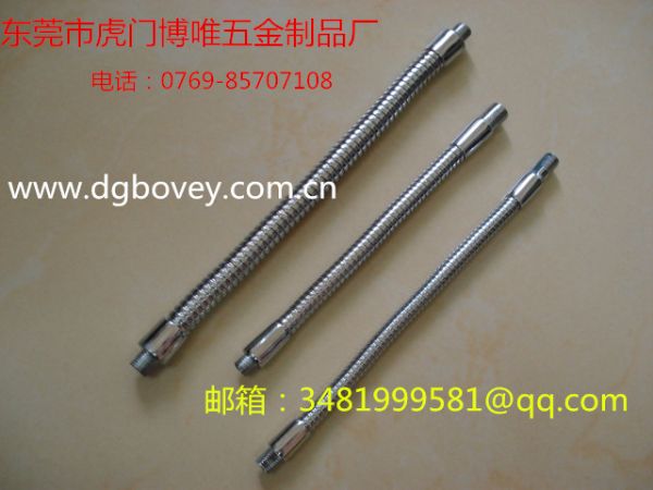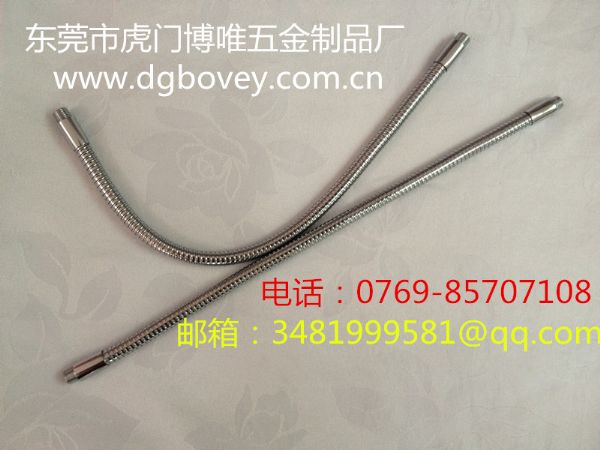 1.定型金属软管包括: 金属软管,鹅颈管,蛇管, LED台灯软管,灯饰软管,扫描枪软管及各种支架软管。此软管具有强度高,定型效果好,可任意弯曲定位,不反弹,无异响等特点,广泛应用于LED台灯,照明灯具,平板电脑,内窥镜,扫描枪,摄像头放大镜,耳机,麦克风等需要弯曲定型功能的产品上。外径可做到∮2.0mm--∮30mm,根据客户的不同需求,软管两端可配套各类型五金连接件,另可提供各类表面处理(如镀铬,锌,镍,电泳,烤漆以及加套各种颜色热缩套管等)。并能根据客户的要求开发出各类适合之产品。