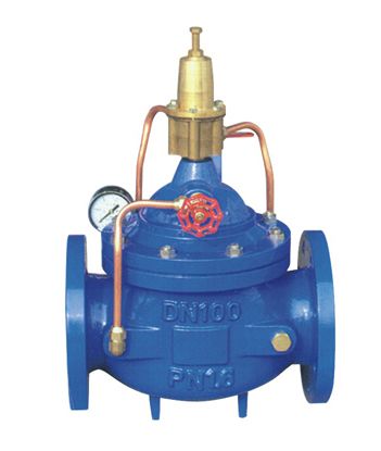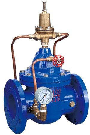 当进入隔膜(活塞)上方控制室内的压力水被排到大气或下游低压区时,作用在阀瓣低部和隔膜下方的压力值就大于上方的压力值,从而将主阀阀瓣推到完全开启的位置:当进入隔膜(活塞)上方控制室内的压力值处于入口压力与出口以来中间时,主阀阀瓣就处于调节状态,其调节位置取决于导管系统中的针阀和导阀的联合控制作用。