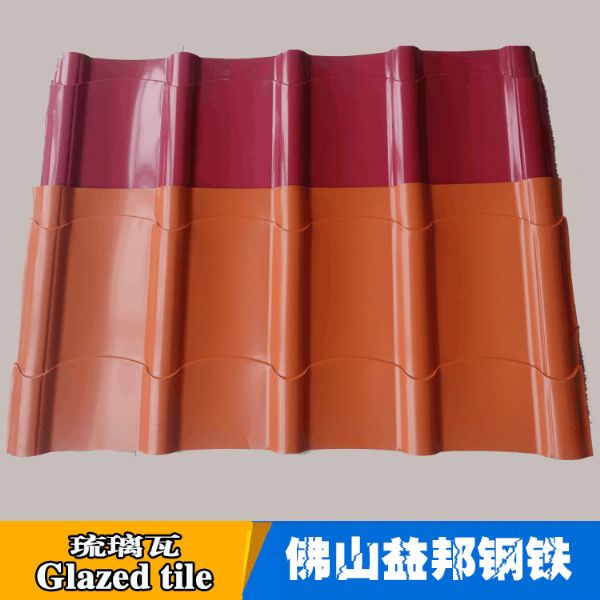 佛山益邦镀铝锌彩涂板 840型琉璃瓦橘红色彩钢瓦