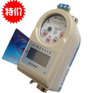 智能插卡水表后付费模式,即先用水后付费:水表初始可用水量为零,阀门状态关闭。管理部门设置用户的大允许先用水量,开户时预先充值到用户卡中。用户将用户卡插入对应水表,水表读取可用水量,然后打开阀门,正常供水。水表中可用水量用完后,阀门关闭,用户持卡到售水点交费。然后售水点再次为用户卡充值,重复*一次的过程。