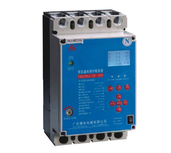 FDDZ20LE(ZD)系列智能漏电保护断路器(带自动重合闸功能)(以下简称断路器),是本公司近年来为适应城乡安全用电实际环境而研制开发的科技创新产品。集剩余电流保护、过流保护、断零、欠压、过压、缺相等保护及手动、自动分合闸等功能于一体的多功能的智能漏电保护断路器。