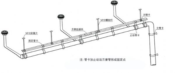 落水管。这种结构的厂房采用重力排水难以将内天沟的雨水从天沟两端排出,厂房内部又不允许挖