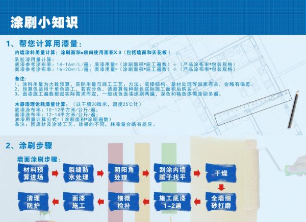 理论耗漆量:辊涂12-15 ㎡/L,喷涂8-10m2/L,实际耗漆量因施工方法与基材的平整度不同而 异