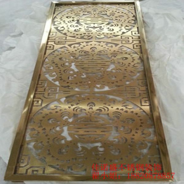 甚至同一个工厂在不同的时期做的工艺也可能不同。不锈钢屏风中的工艺设计的主要内容包括图案、形状、排列、焊接方式、表面效果、颜色、材料质感等。它对建筑物、构筑物、以及外部条件的要求,都是设计的主要依据。目前,行内主要制作的工艺不锈钢屏风,多在图案上下工夫,如采用传统中式图案,复古质感,表达了对清雅含蓄、端庄丰华的东方式精神境界的追求。