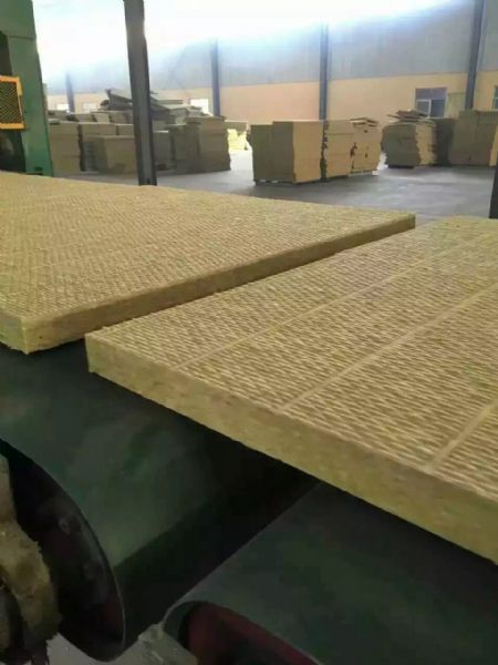 粘结剂、防尘油、憎水剂后经集棉机收集、通过摆锤法工艺,加上三维法铺棉后进行固化、切割,形成不同规格和用途的岩棉产品。