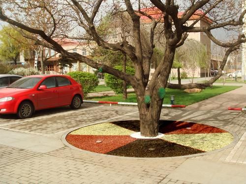 树池口采用铺设胶粘石方法,为行人和停放车辆带来了极大的便利,解决了社区黄土露天等问题,从细节处提升了社区环境质量; 在行车道两侧的行道树树坑中采用铺设胶粘石的方法,可以及时的将雨水渗入地下,减少行车路面积水,提升了车辆通行效率。