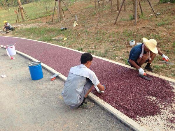 胶粘石是以进口*胶与天然彩色石子经特殊工艺制作而成,具有坚固美观、色泽自然、不易褪色的特点,它是一种新颖的艺术景观铺装材料。 胶粘石具有生态、透水、透气及较好的防滑功能面且环保*、无辐射、无环境污染、是一种会呼吸的生态地面。