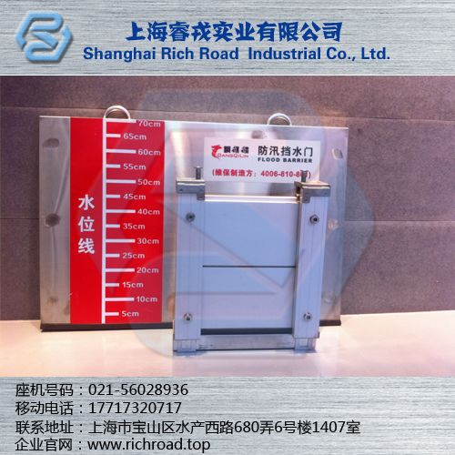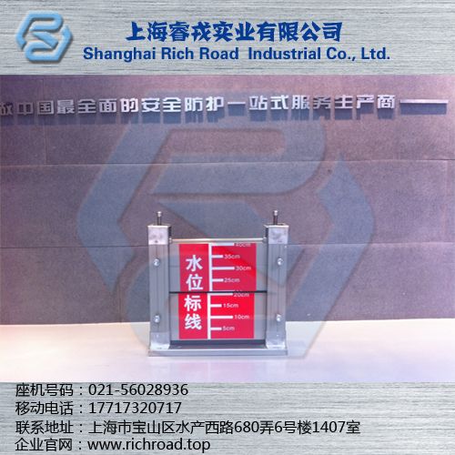 6、防汛挡水板上面标注有水位深度线,直接就可以知道水深,并设计有醒目的企业LOGO及标语,提升项目管理方的管理形象;
