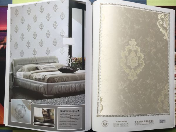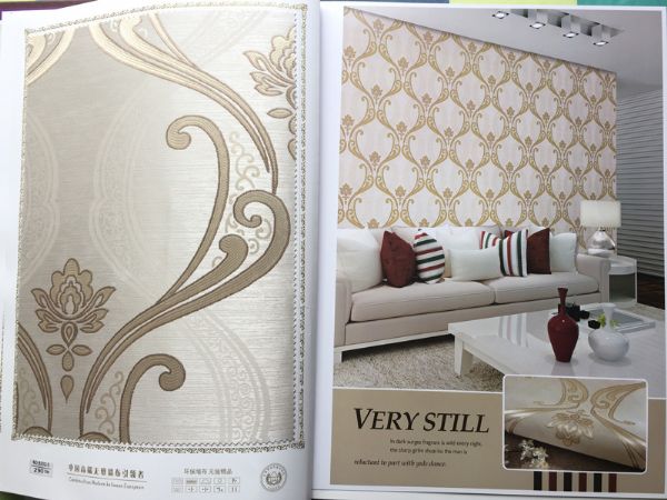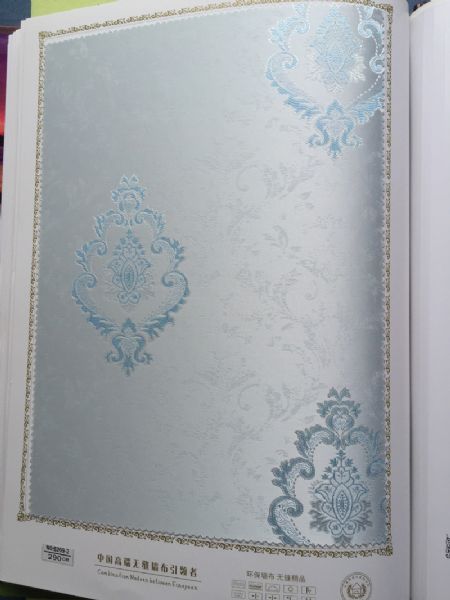 采用的是绿色环保的纤维织物,规格在2.7米-3米。品种工艺有:高经密色织提花、金银丝色织提花、多色印花、多色刺绣等等工艺。壁布底层采用的是环保无害的