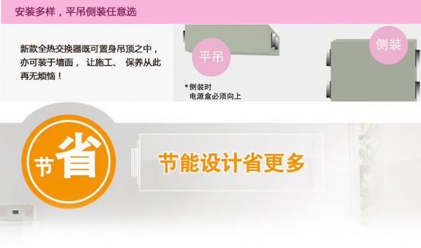 3、节能减耗:带有热回收功能的全热交换新风系统利用机内的全热交换芯,进出的空气通过
