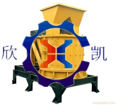 物料由机器上部垂直落入高速旋转的叶轮内,在高速离心力的作用下,与另一部分以伞状形式分流在叶轮四周的物料产生高速撞击与粉碎,物料在互相撞击后,又会在叶轮和机壳之间以物料形成涡流多次的互相撞击、摩擦而粉碎,从下部直通排出,形成闭路多次循环,由筛分设备控制达到所要求的成品粒度。