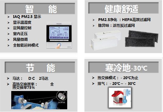 过脏的情况下可降低风量运转,室内温暖室外冷时又自动调节到全热交换模式