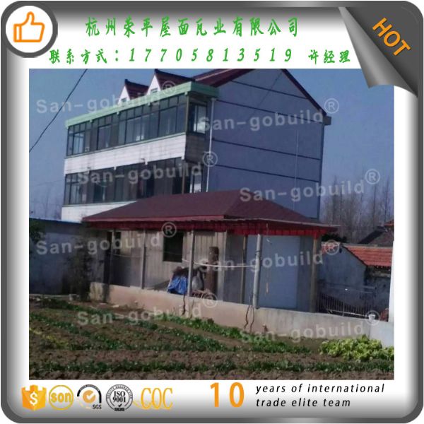 彩石金属瓦,圣戈邦品牌量大从优.宝石蓝、水墨灰、古黑色、青黛绿、秋叶棕、中国红、亚洲红、海洋蓝、云石灰、棕褐色、枯滕褐,颜色认您挑选!主要用于