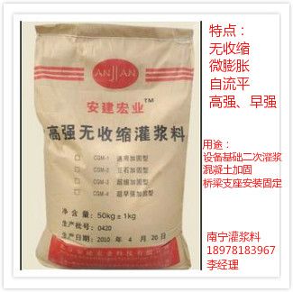 (3)无收缩、粘结强度高:具有微膨胀,与钢筋的握裹力28天大于6MPa。确保地脚螺栓和机座 (钢结构)基础以及新老混凝土牢固结合。