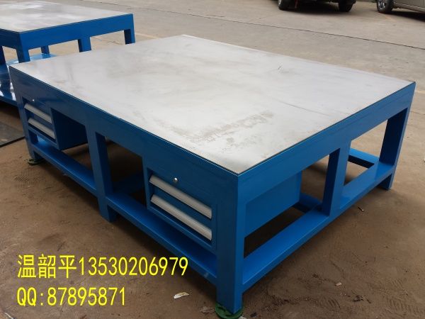 铸铁钳工台的优点是表面经过铲花处理,光滑,平整,防刮花,承重力高,常用在模具装配,拆卸,修理,飞模等。