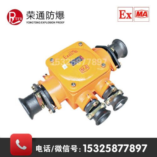 低压电缆接线盒适用于含有爆炸性危险气体(甲烷类)和煤尘的井矿中,供交流50HZ、127V(20A)、380V(25A)、660V(40-400A)、1140V(200-400A)的供电系统中,共信号、照明、动力设备等作电缆连接和分支之用。