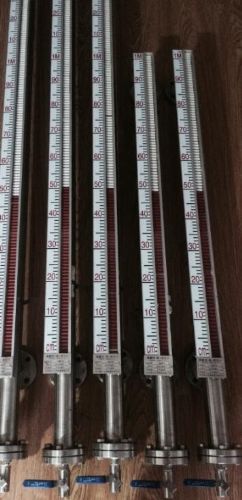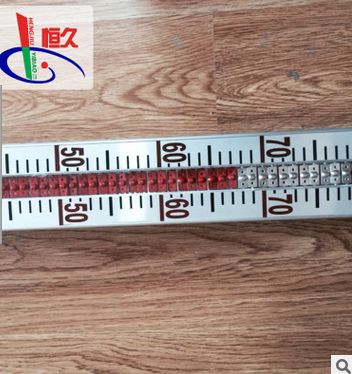 液位计根据浮力原理和磁性耦合作用原理工作的。当被测容器中的液位升降时,液位计主导管中的浮子也随之升降,浮子内的**磁钢通过磁耦合传递到现场指示器,驱动红、白翻柱翻转180°,当液位上升时,翻柱由白色转为红色,当液位下降时,翻柱由红色转为白色,指示器的红、白界位处为容器内介质液位的实际高度,从而实现液位的指示。加装限位开关实现液位报警与控制。加装