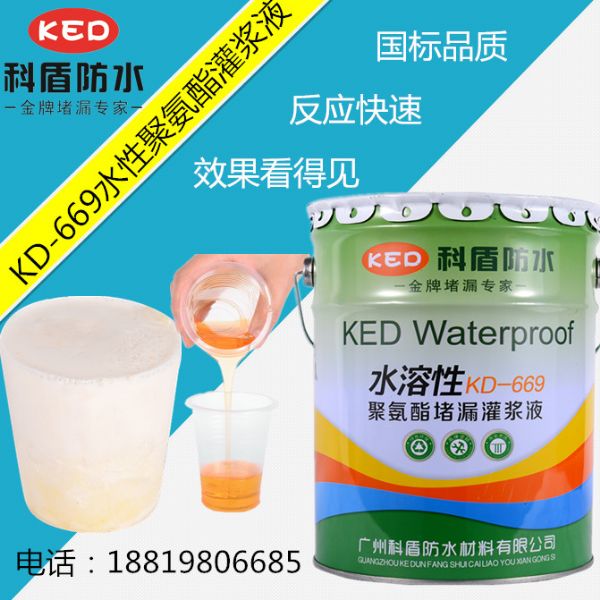 1、 粘度低与水接触立刻起化学反应而膨胀。