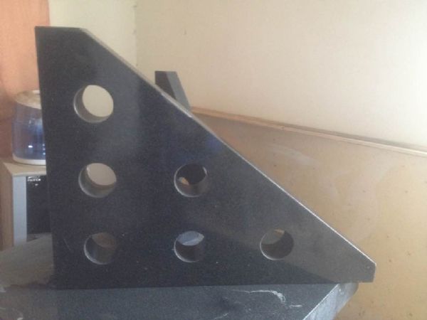 平尺放置在精密大理石平板上,使装有分度值0.001mm 千分表的表座通过标准圆棒,在标准大理石方箱上对零。然后以同样的方式使表座靠紧大理石直角尺的另一个工作面,此时千分表的读数即为该侧面的垂直度误差。大理石直角尺的垂直度取*大误差值。