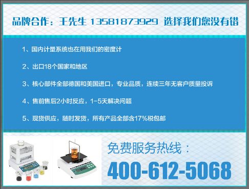 三、密度计精度的选择,一般分为千分之一(0.001克/立方厘米、万分之一(0.0001克/立方厘米)。这二种其本能满足大部分的密度检测。密度计的精度极为重要,国产的一般价格较为便宜与实惠,但标定的精度与实际的测量精度还是有差别。