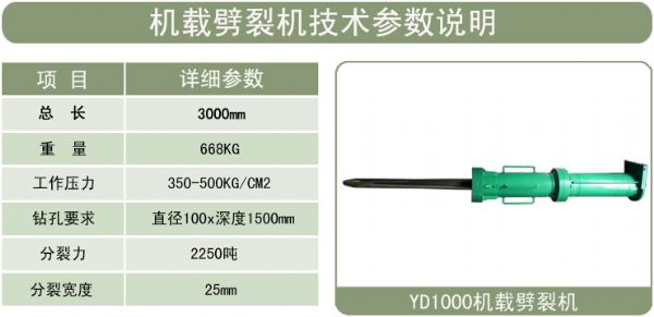 设备直接安装在挖掘机上,大大方便了施工作业。深圳岩都的大型机机载式液压劈裂机采用日本液压技术机改装机机载式液压劈裂机,是我公司对手持式液压劈裂机进行深度开发的一款高技术含量的静态爆破设备,它是以挖掘机为动力机械为基础进行副加值提升的一款产品,机载液压劈裂机的劈裂力可达到2500吨,劈裂深度一米5以上,劈裂截面达1.5-2米,裂隙宽度达25厘米。. 本公司循用户的需求,谨遵“安全、品质、关注环保”的核心理念,致力于将世界*的机械产品引入中国市场,促进国内