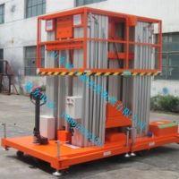 四桅柱豪华铝合金式升降平台: 整体采用高强度铝型材精制而成由于型材强度高,采用四桅柱式结构,稳定性很好,运转灵活,载重量大,平台面积大,推行方便。它轻盈的外观,能在极小的空间内发挥的举升能力。使升降台的偏转与摆动极小。该升降机广泛用于厂房、宾馆、大厦、商场、车站、机场、体育场等。可用作电力线路、照明电器、高架管道等安装维护,高空清洁等单人工作的高空作业。