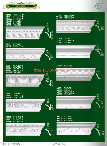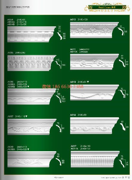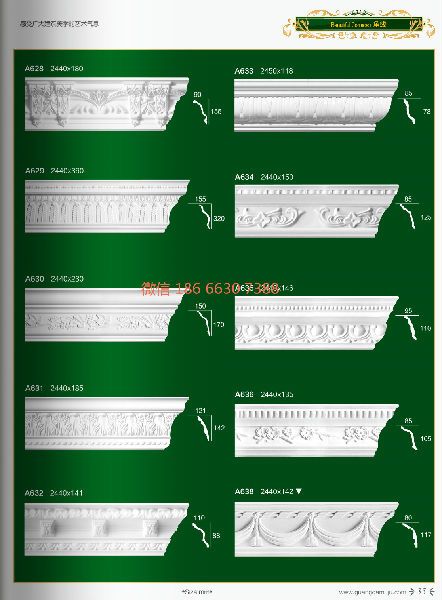 石膏线表面光洁,花纹清晰,立体感强,施工性能优良,防火,防霉蛀,防潮,隔音,隔热,可锯可刨,施工工艺简单方便.室内装饰效果展现了其独特的朴实典雅,雍容华贵,品格高尚的新古典及现实主义艺术风格,是一种新型绿色环保材料,在建筑上占有独特的地位。