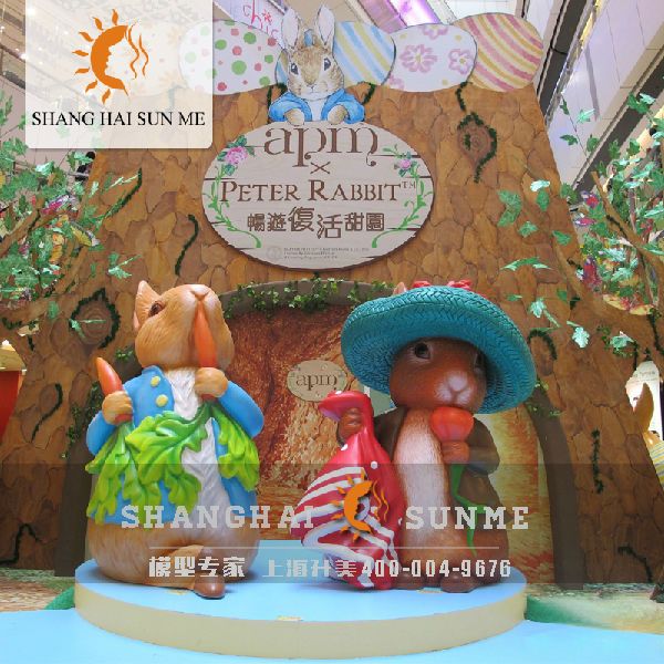 上海升美彼得兔玻璃钢雕塑 卡通树脂模型道具商场户