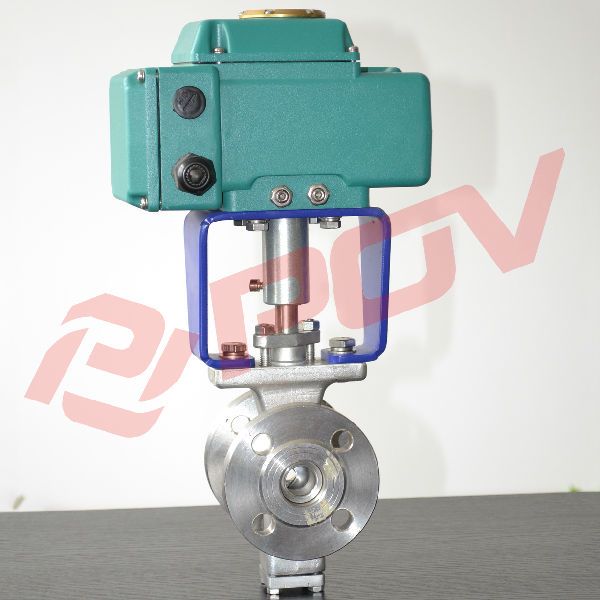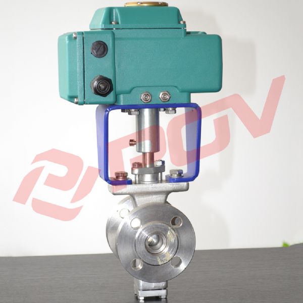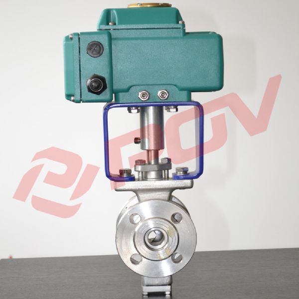 执行器90度的旋转来带动阀球的旋转以达到介质的流通与阻断。电动V型