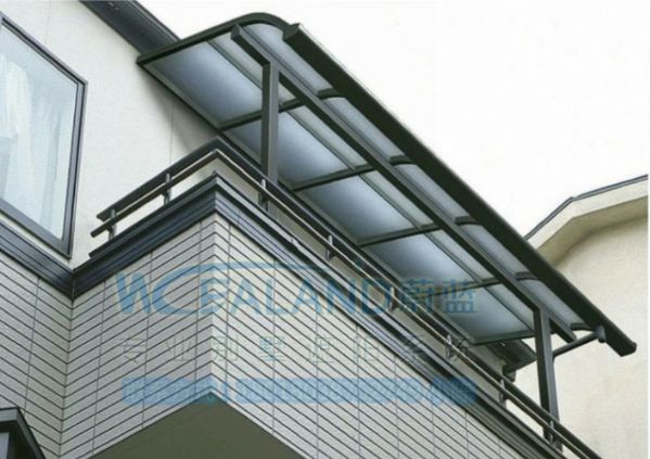 、遮阳雨蓬、钢架玻璃雨蓬、pc