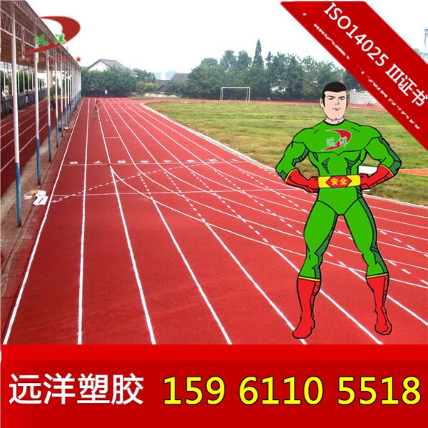 2、 面层采用EPDM(三元乙丙)胶粒,使之具有高度紫外线抵抗力,实践证明,无褪色,强力耐磨。