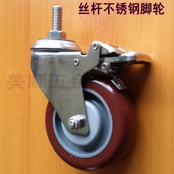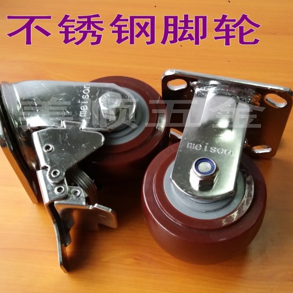 万向轮2寸1.5寸定向PU聚氨酯尼龙双轴承丝杆带刹万向轮