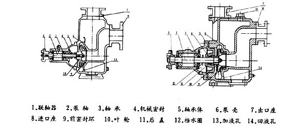 该自吸式离心泵是选用优质材料精制而成,密封采用硬质合金机械密封,经久耐用,吐出管路不需要安装安全阀,吸入管路不需安装底阀,因此简化了管路系统,又改善了劳动条件。
