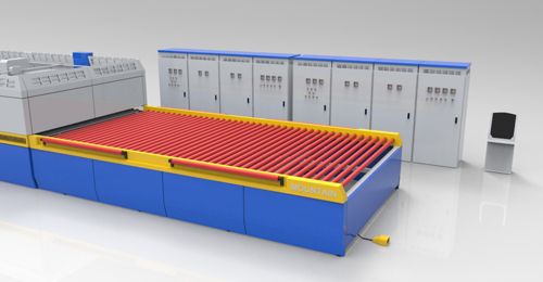 MT-GWL系列连续弯钢化机组主要用于生产轿车侧窗和其它弯曲半径大于1000的产业玻璃。