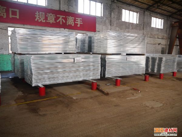 规格相同的脚手板,木跳板的重量是钢制脚手板的1.5-2倍重量,而且雨天木板吸水后更笨重,且极端不防滑。工人搭架施工时,木板须2人抬运,而我公司生产的钢跳板一人可拿2-4片,极大的提高了工作效率,高强度性使得脚手架管的数量也能减少使用。
