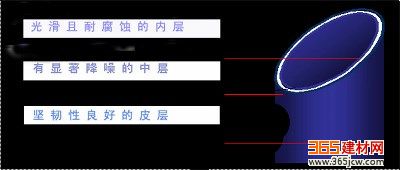 塑料管道;空气压缩和水流流动的声音则会被中间层的特殊吸声材料吸收和隔离。中间层柔软的粘弹性材料,具有独特的微观结构,可以有效吸收噪声;中间层的密度和厚度均为可调,并且能够通过改变吸声材料的添加量达到不同的降噪要求。