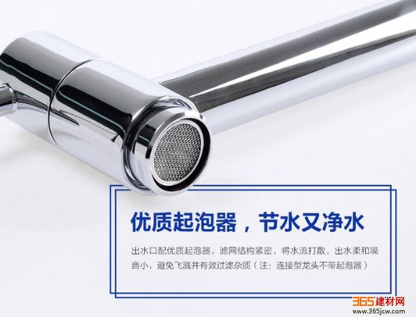 出水口配优质起泡器,滤网结构紧密,将水流打散,出水柔和噪音小,避免飞溅并有效过滤杂质(注:连接型龙头不带起泡器)