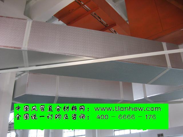 风管板材以压花(或光面)铝箔为表面、夹层为难燃性B1级的高密度硬质聚氨脂发泡材料所制成。采用这种材料制成的风管具有外表美观、内里光洁平滑、良好的隔热和隔音性能、重量较轻、制作安装方便、维修简易和耐用性高等多项优点。