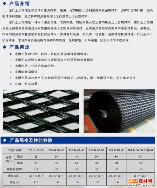 玻纤土工格栅:幅宽1米--6米,拉力20×20KN,30×30KN,40×40KN,50×50KN,60×60KN,80×80KN,100×100K,120×120KN,150×150KN