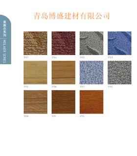 卷材地板及片材地板。有印象,实耐,亚麻,新欧雅,欧尚,欧冠等多个系列。产品具有抗菌、防干、湿滑、安装简易、防霉防潮、刮痕掩饰、清洁简便、反弹力强、高度耐磨等特点。多功能、高品位、设计完美的高级商用地板材料适用范围广阔。