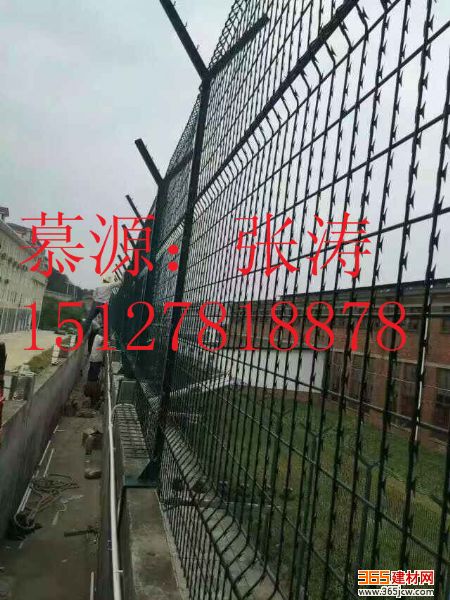 注:如果在监狱护栏网顶部加装刀片刺丝、