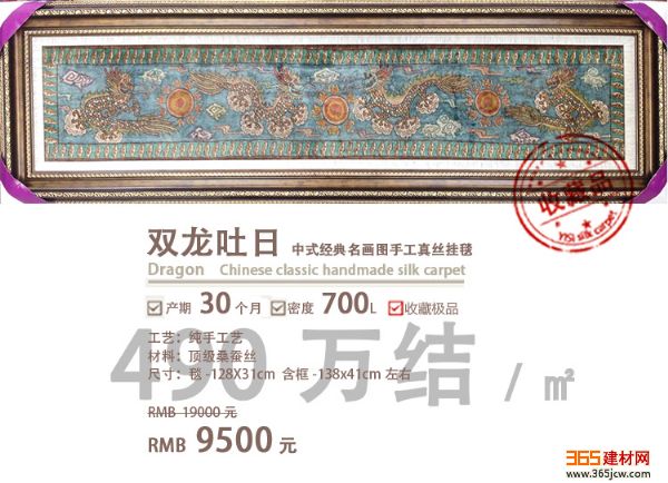 亿丝双龙吐珠手工真丝挂毯