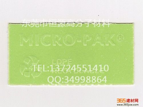 聚乙烯。根据客户要求有绿色,蓝色,黑色,白色,金色,红色等迈可达(MICRO-PAK)品牌防霉片。