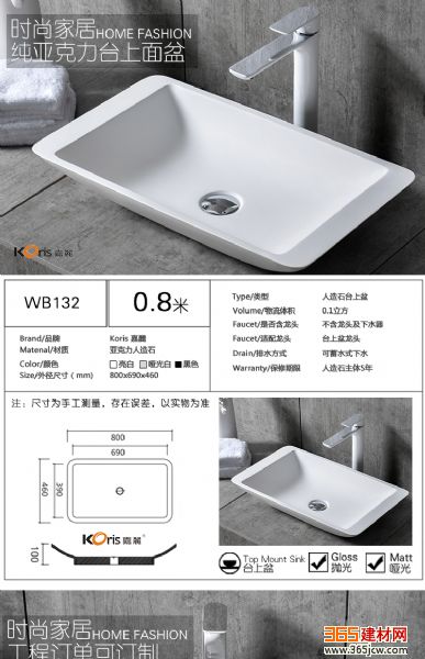 人造石洗手盆 浴室面盆 台上面盆 纯亚克力面盆