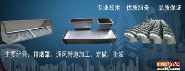 通风管道、消防排烟管道、厨房排烟管道、排烟罩、风管等。 2、消声器,静压箱。 经营方式: 1、风管的制作、安装、运输、保温。 2、来料加工,加工费优惠。 欢迎各界惠顾!来电垂询!