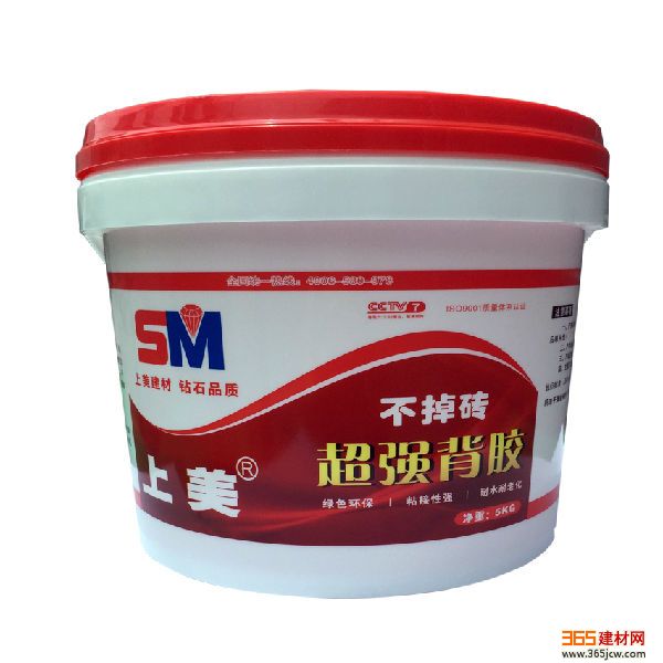 为单组分水性液体,绿色环保,粘接性能优异,耐水耐老化。经过上美不掉砖超强背胶处理过的各种瓷砖、
