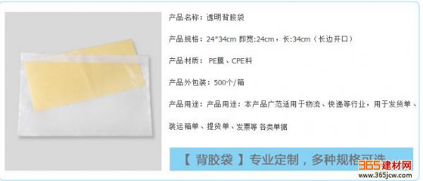 背胶袋易于使用,背胶袋背后涂胶可以粘各种包装物表面,防灰尘和水分。