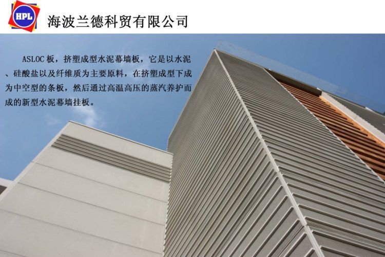 幕墙挂板式样别致,为您的设计提供为色彩丰富的创意。 挤塑成型水泥幕墙挂板由于高质量,多色样,低价格而受到青睐。