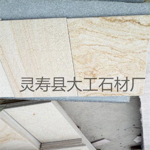 花岗岩,材质硬度高,耐磨损。颜色分为米黄色、黄色、青色;可用于高档建筑装饰